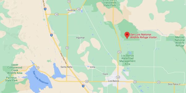 In Turlock, take the Lander Ave/Highway 165 exit toward Los Banos. Travel south on Hwy 165 through the communities of Hilmar and Stevinson. At the 4-way stop at the intersection of Hwy 165 and Hwy 140, continue southbound (straight) toward Los Banos for 12.5 miles. Turn left on Wolfsen Road. Follow Wolfsen Road approximately 2 miles until the pavement ends at the Refuge entrance. Continue through the gate on the gravel road and follow the signs to the Elk and Waterfowl auto tour routes. The Visitor Center is on the left immediately after passing through main entrance.
